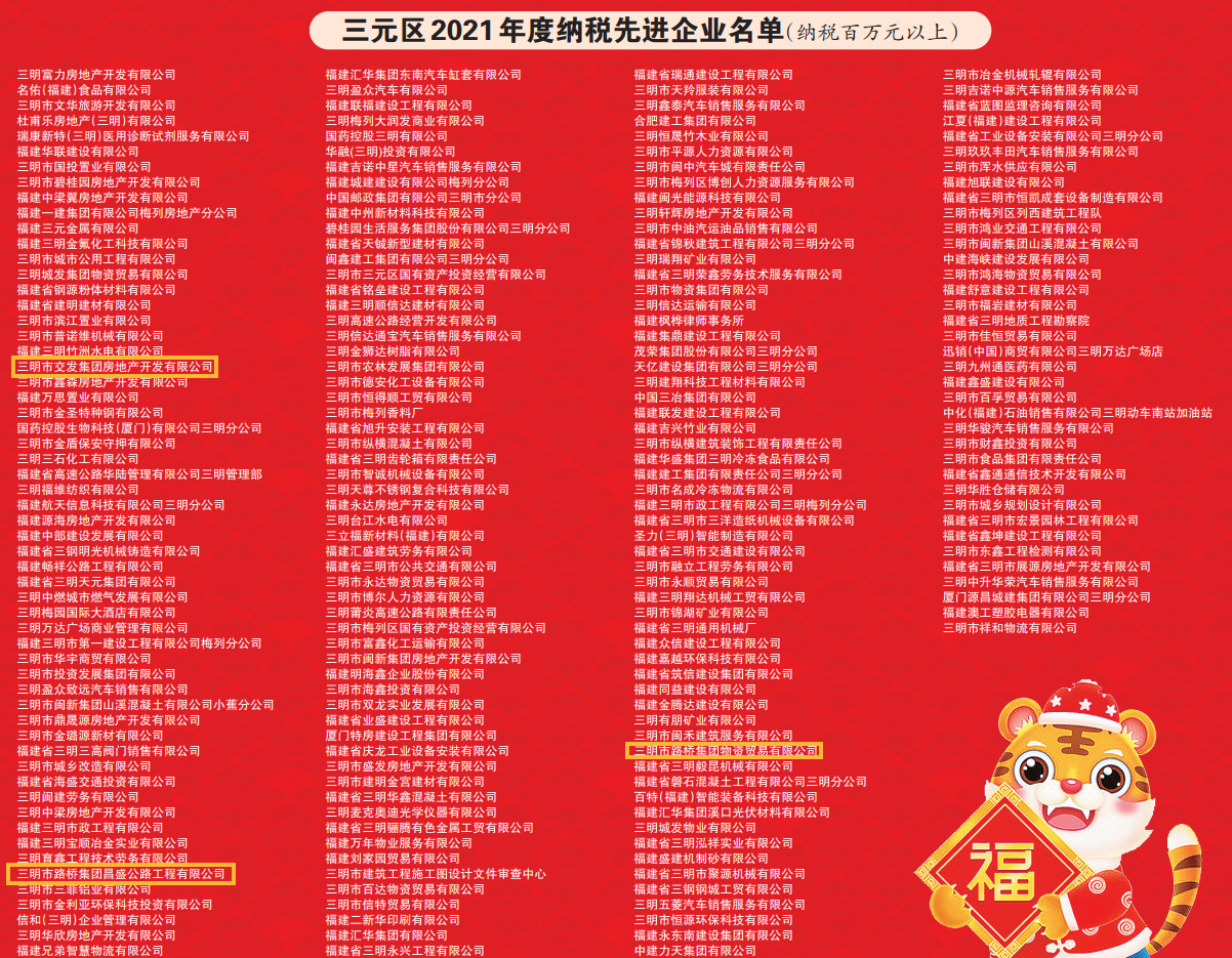 近日,市路橋集團(tuán)旗下的三明市交發(fā)集團(tuán)房地產(chǎn)開發(fā)有限公司、三明市路橋集團(tuán)昌盛公路工程有限公司、三明市路橋集團(tuán)物資貿(mào)易有限公司被中共三元區(qū)委、三元區(qū)人民政府授予“2021年度三元區(qū)納稅先進(jìn)企業(yè)”榮譽(yù)稱號(hào)。